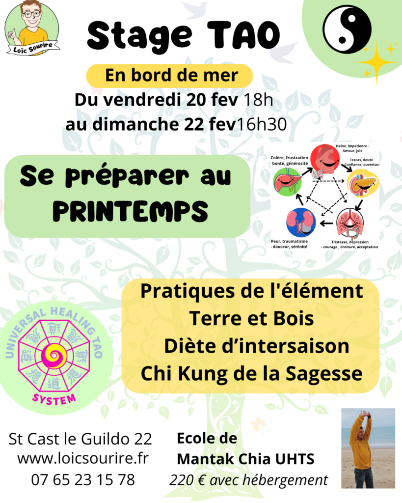 20, 21 et 22 février 26 “Le retour du printemps” L’élément Bois et son Chi Kung et Nei Gong et diète de printemps